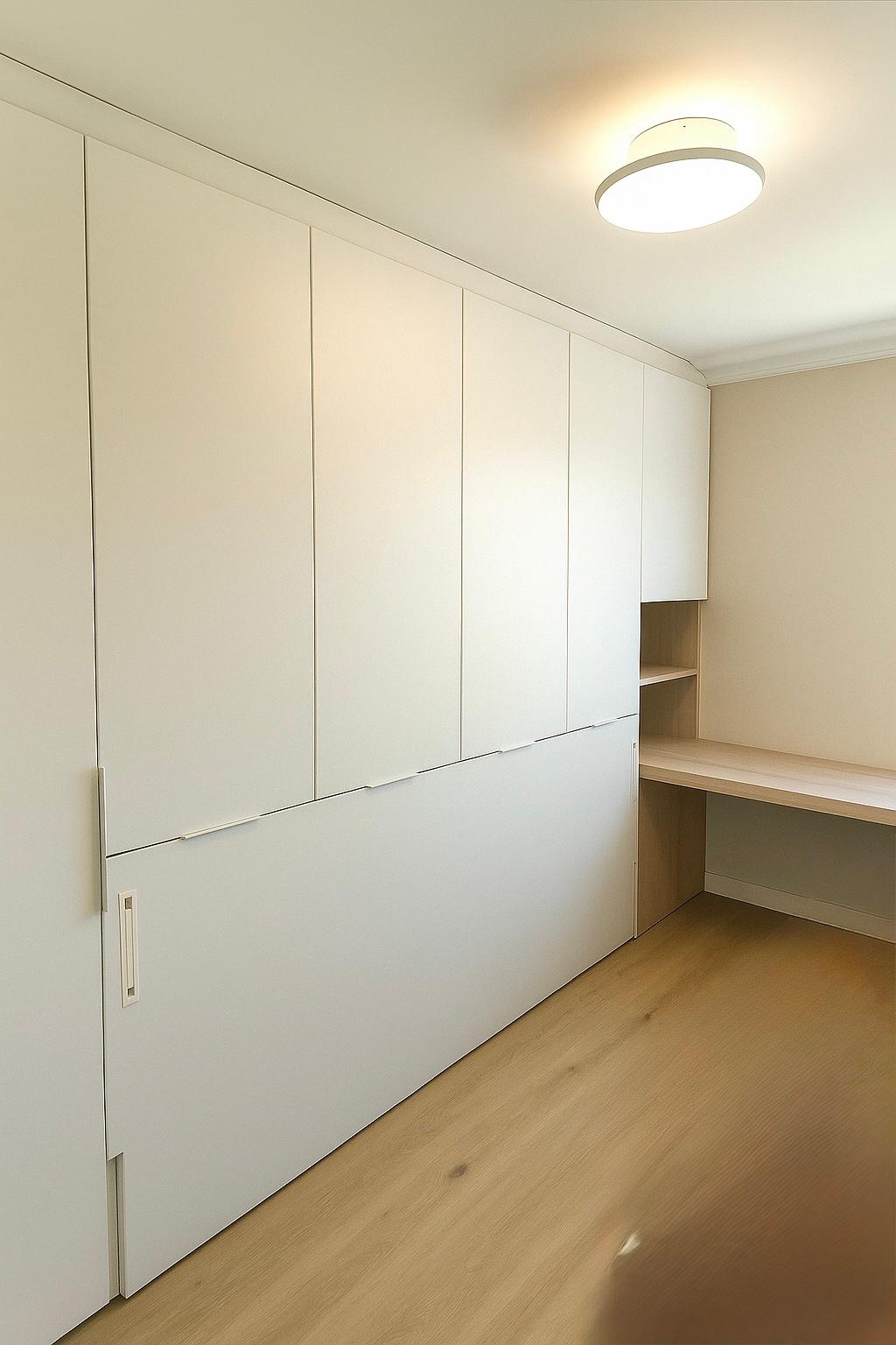 • Cama abatible con armario encima de 90×190 fondo 60 cms con capacidad de barra de colgar y estantería