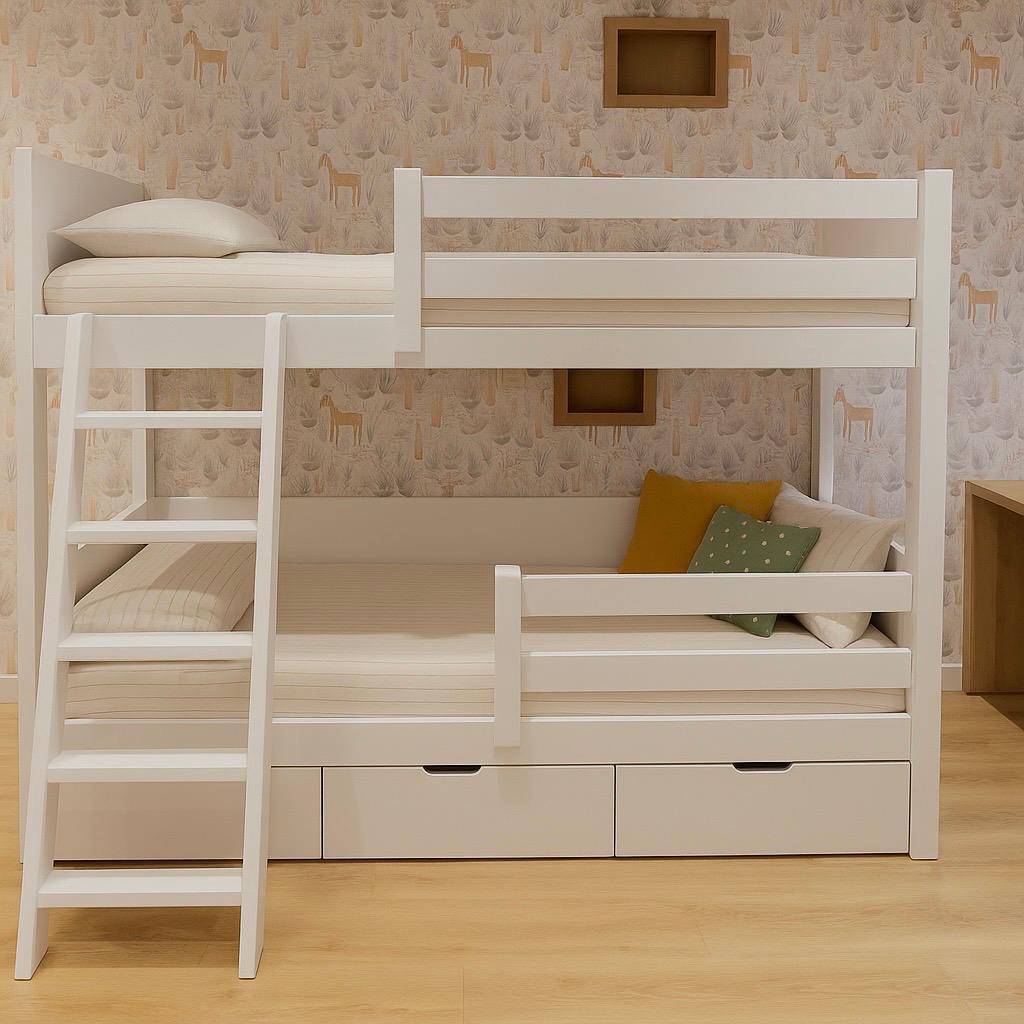 Litera lacada con escalera a suelo con cajones y 2 camas