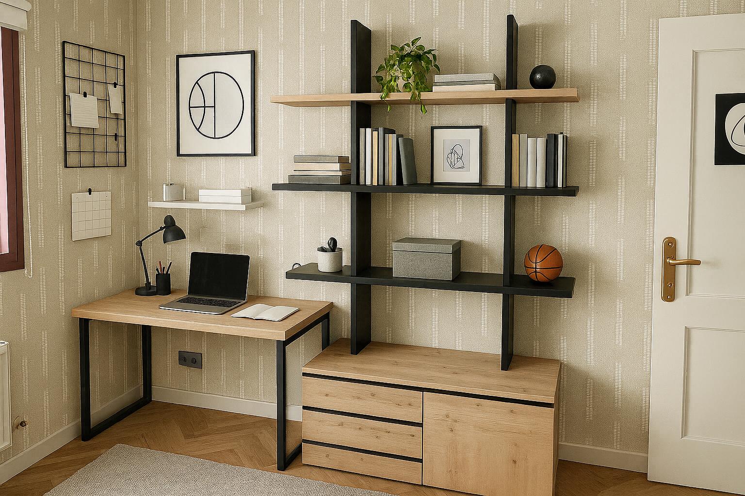 Zona de estudio a medida con estantería